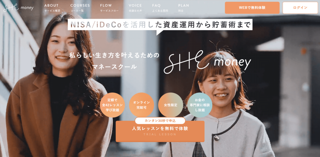 社名: SHE株式会社 住所:〒107-0062 東京都港区南青山3丁目7-21 TEL:03-6459-2955 SHEmoneyは、将来の資産形成や家計管理など正しいお金の知識を体系的に学ぶことのできる女性のためのオ