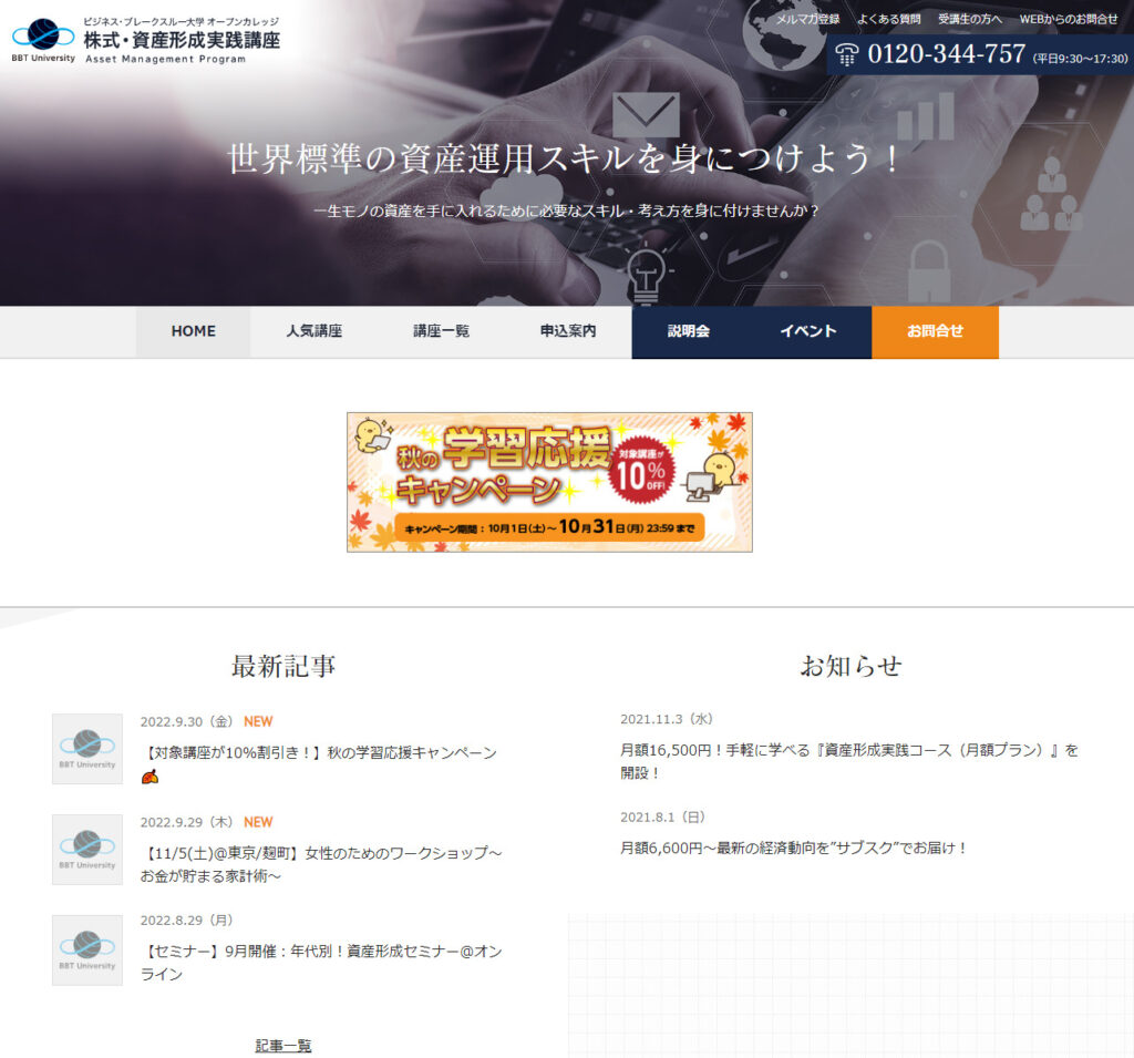株式・資産形成実践講座 TEL:0120-344-757 営業時間:平日9:30~17:30 ここ数年、資産形成、資産運用などの言葉をよく目にします。2022年4月には高校での投資教育が義務化され、日本での投資環境が整備