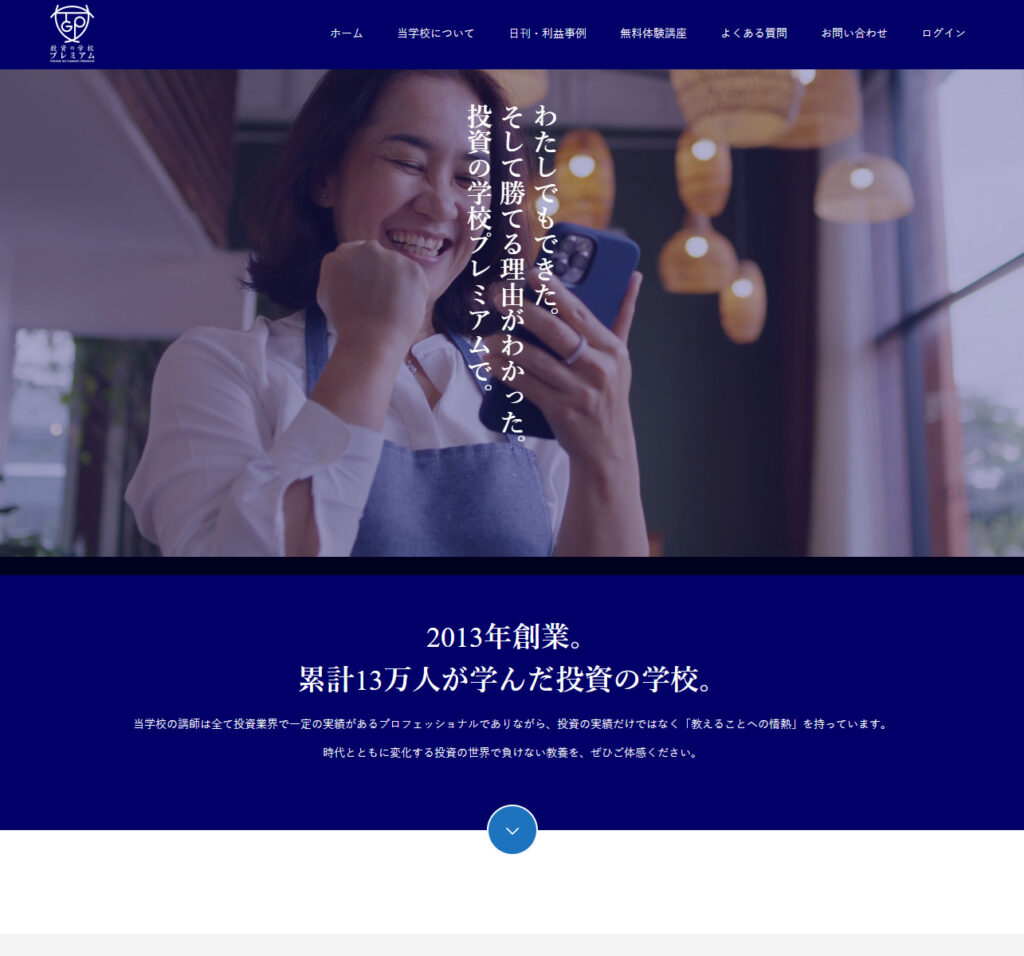 投資の学校プレミアム(株式会社ファイナンシャルインテリジェンス) 住所:〒160-0022 東京都新宿区新宿6-7-22エルプリメント新宿151 今回紹介するのは株式会社ファイナンシャルインテリジェンスが運営している、投
